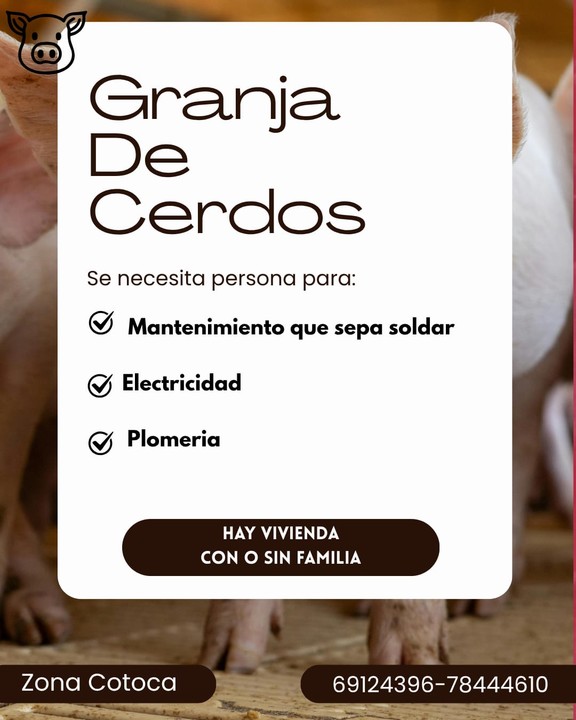SE NECESITA PERSONA PARA| mantenimiento que sepa soldar, electricidad, plomería. Zona Cotoca. Inf. 69124396 - 78444610 (W006332522)