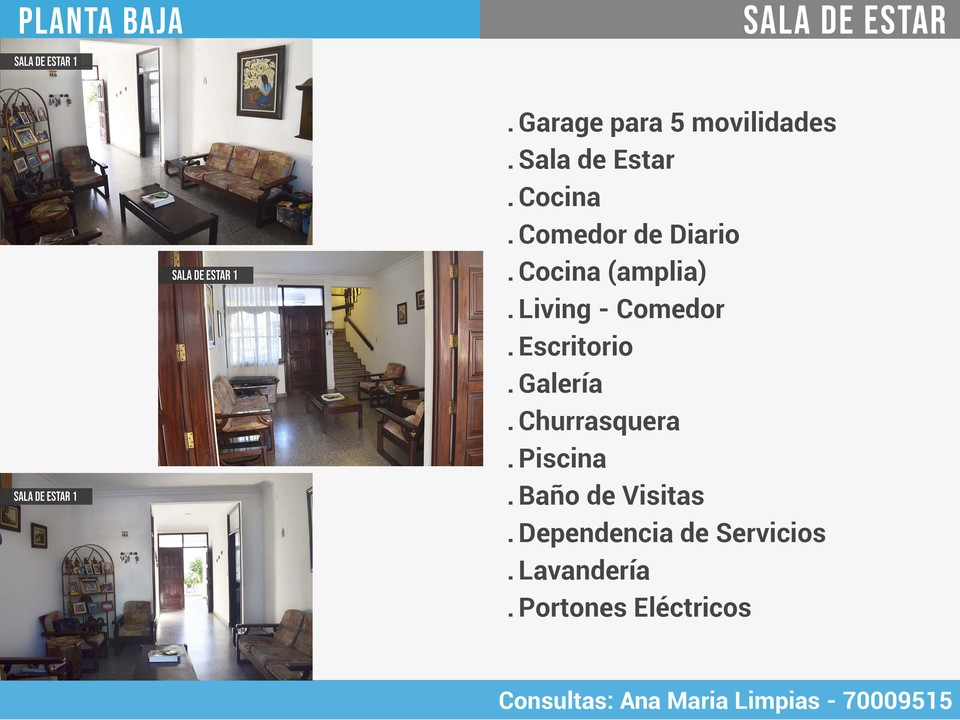 VENDO CLÍNICA DE 1ER NIVEL completamente equipada y amoblada en barrio Las Palmas. 14 Consultorios, sobre Av. Principal, terreno de 600m2. Mayor informes al 76910503.