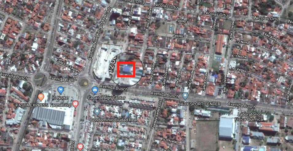 En Venta Casa y Terreno de 535m2, consta de 12 habitaciones, 2 pisos. Frente al nuevo mall, a 10m de la Av. Busch y 3er anillo. Cercano a universidades. Precio: $720000. Ref. 75030008