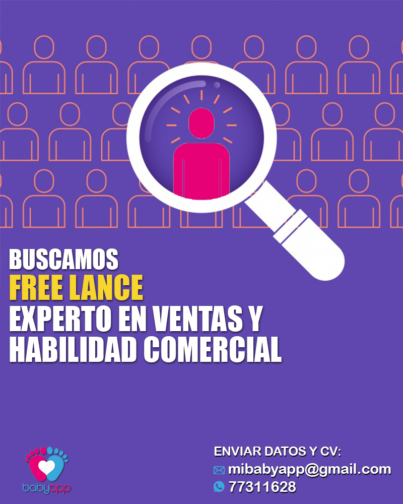 TE BUSCAMOS A TI: Encargado Comercial, experto en ventas o apasionado por las ventas FREELANCE. Excelente ambiente de trabajo y de clientela. Ingreso fijo mas comisión. Buena presencia, de preferencia mujer. Enviar hoja de vida a: mibabyapp@gmail.com o al whatsapp 78116061