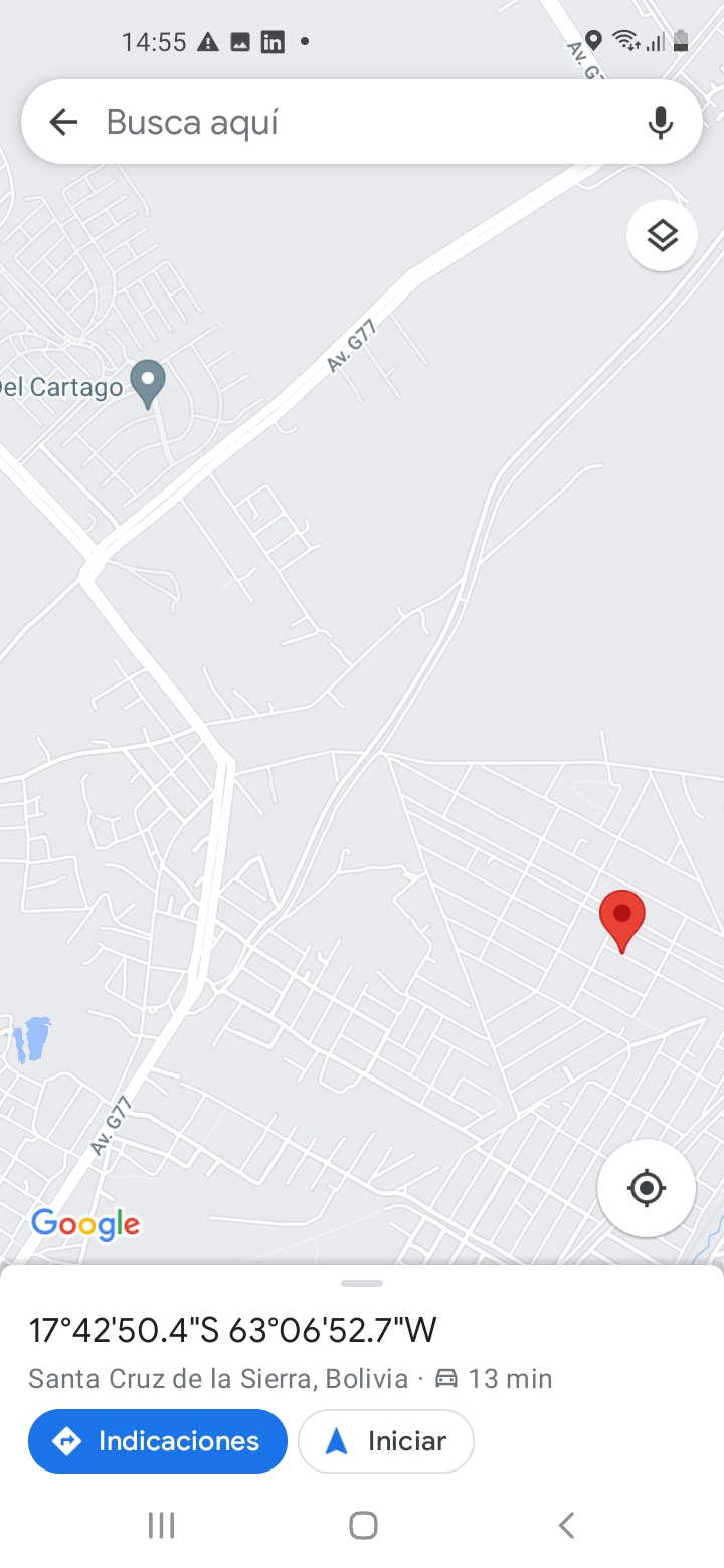 De ocasión, lote de 420 Metros cuadrados, Urbanización Trapero, Zona Avenida G77, papeles al día y trato directo con propietario. En tan solo 17.900 $us. Llamar al teléfono 70070888.