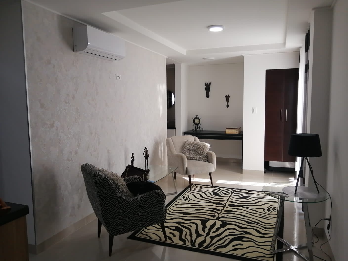 Excelente ubicación Equipetrol a 5 cuadras del Hotel Tajibos 2 aires acondicionados, cocina, Extractor, microondas Refrigerador mesón de granito, taburetes regulables, lavadora, calentador de agua,cama 2 plazas, ropero empotrado Incluye tv por cable e Internet. Mes de garantía, mes adelantado. Entrega inmediata