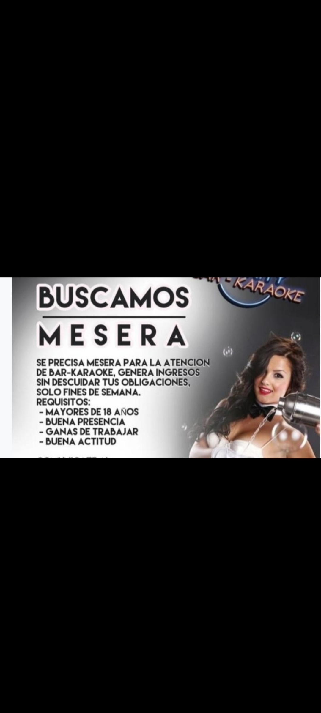 Se necesita personal femenino para antender bar karaoke, 2do. anillo paraguá, de jueves a sábados. y anfitriona para los sábados que tenga redes sociales activas (tiktok). entrevistas: 77360026 wsp.