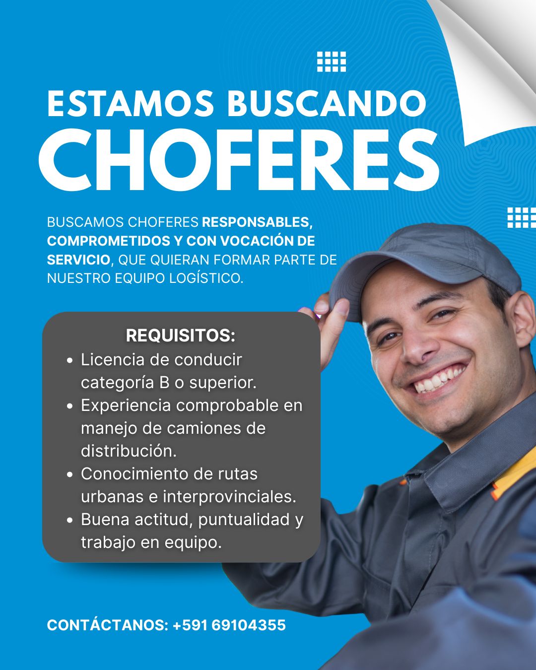 BUSCAMOS CHOFERES EN MULTICOMPRAS. Requisitos: